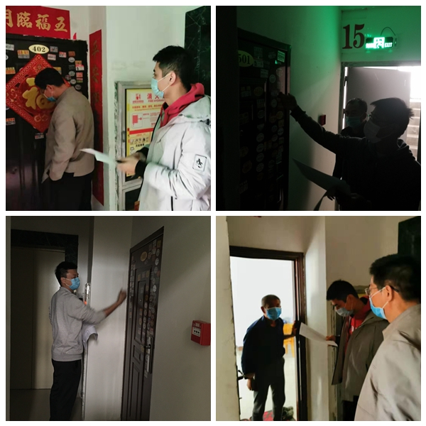 当天晚上,后勤处工作人员戴上普通口罩,不畏疫情传染风险,爬楼梯、挨家挨户敲门,详细了解常住人口数量、身体状况、14天内是否有接触过湖北等重要地区人员等具体情况,并对信息详细记录整理,对于无人应答的住户进行电话排查。邢树兴、潘新生不厌其烦地敲门;麦瑜、李长明的一声“您好,我们是后勤处的,请问您是……”,文立、邢维京的记录,所有这些,无不凝聚着后勤人辛勤的汗水。经过一天的调查,初步完成了第一次排查任务。刚松一口气,又接到派出所电话,有一位武汉籍贯的老师家属身份证对不上。于是,又忙着一个接一个地打电话,几经反复,终于完成了任务。大家轻轻地松了一口气。