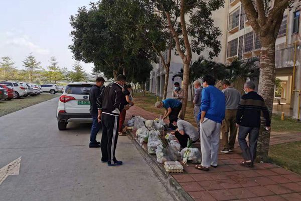 最方便群众的就是陈军建立的“三亚菜篮子”微信群,教职工只需通过该微信群将自己所需要的各类食品和蔬菜等提前一天下单,第二天保障供应小组工作人员就对食品和蔬菜进行分拣、包装,及时分送到教师村楼下,让教职工不出校门就能买上放心生活食品。