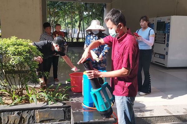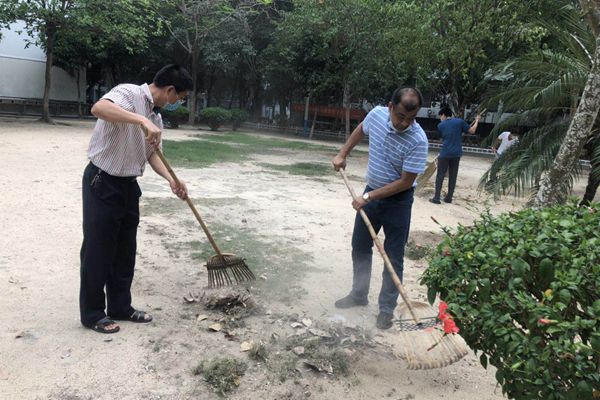 四月的三亚,阳光明媚,碧波荡漾,后勤人依然在行动。“疫情是魔鬼,我们不能让魔鬼藏匿”。每天,后勤人全力做好教师村、留学生公寓、学生公寓、校园以及教学楼等公共区域消毒消杀工作。如果稍稍留意,便会看见后勤人使用大喷雾器,调和消毒片对教师村、学生公寓等楼宇周边、楼梯、垃圾车等一次次喷雾消毒,包括使用消毒水拖地地板消毒;安排专人对学生公寓公共区域一天四次消杀,对有学生留校的宿舍和校园开放的公共厕所进行喷雾消毒,地板一天一次消毒、卫生间一天两次消毒,提供洗手液,并在门口粘贴消毒记录表,每次消毒后都要做好记录,不厌其烦,耐心、细致。这些工作是辛苦的,但后勤人从不叫过一声苦!