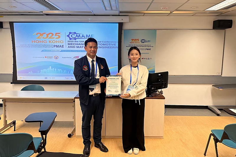 12月19日至21日,beat365理学院副教授邵东旭带领化学专业本科生李晨格前往香港参加CMAME2025会议。会议全称为2025 the 12th International Conference on Mechanical,Automotive and Materials Engineering(CMAME2025)。此次会议由澳大利亚皇家墨尔本理工学院和南亚科学与工程学院(SAISE)联合主办,香港城市大学承办,汇聚了全球机械、汽车与材料工程等领域的专家学者,为参会者提供了面对面讨论交流新想法和应用、建立业务或研究关系以及寻找未来全球合作伙伴的机会。