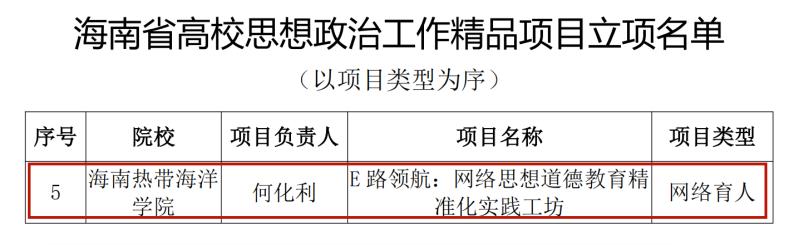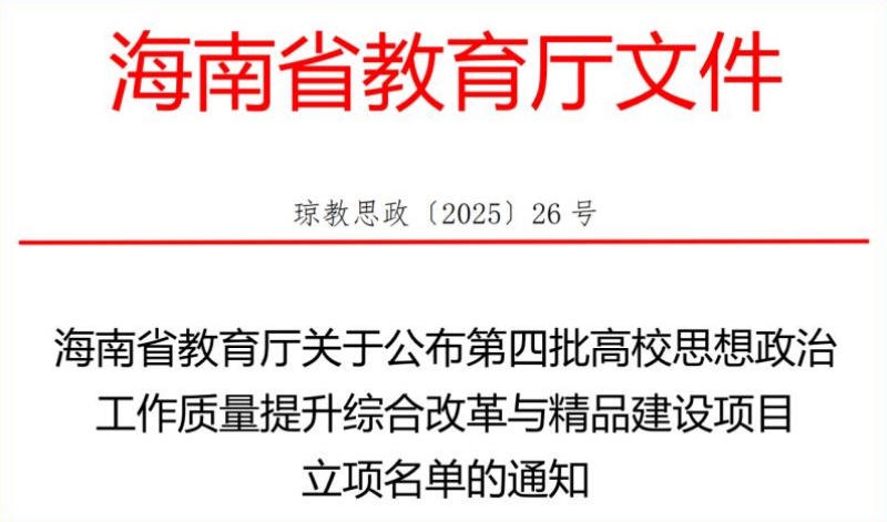 近日,海南省教育厅公布了第四批高校思想政治工作质量提升综合改革与精品建设项目立项名单,beat365五项项目顺利获得立项。