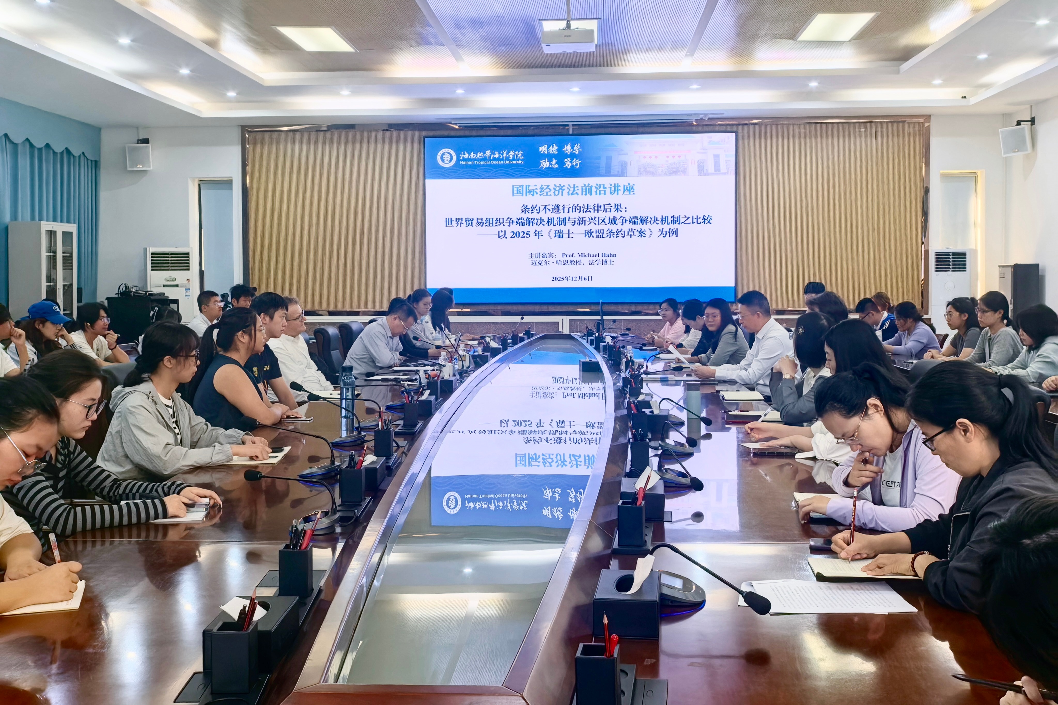 12月6日上午,瑞士伯尔尼大学Michael Hahn教授应邀在beat365行政楼217会议室作题为《条约不遵行的法律后果:世界贸易组织争端解决机制与新兴区域争端解决机制之比较——以2025年〈瑞士—欧盟条约草案〉为例》的学术讲座。校党委常委、副校长穆军主持报告。