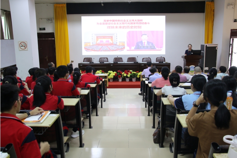 附中党委书记郑海明表示,本次宣讲是一次很好的政治理论学习,内容丰富全面,讲授方式生动灵活,便于学习和和理解,他勉励在座师生以深入学习党的二十大精神为当前和今后工作方向,进一步增强教师、青年的理想政治信念,担起振兴中华之大任。同时他要求各部门继续组织学习,推动理论学习深入各个层面、深入课堂,在学习、工作和生活中做党的二十大精神践行者,用党的科学理论不断武装头脑,服务海南自由贸易港建设,服务山区教育,展现附中担当和使命。
