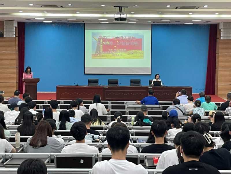 创意设计学院、旅游学院和生态环境学院院领导、师生党员近400人聆听了主题宣讲报告。