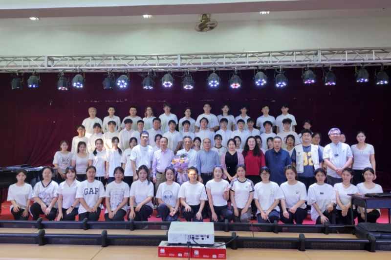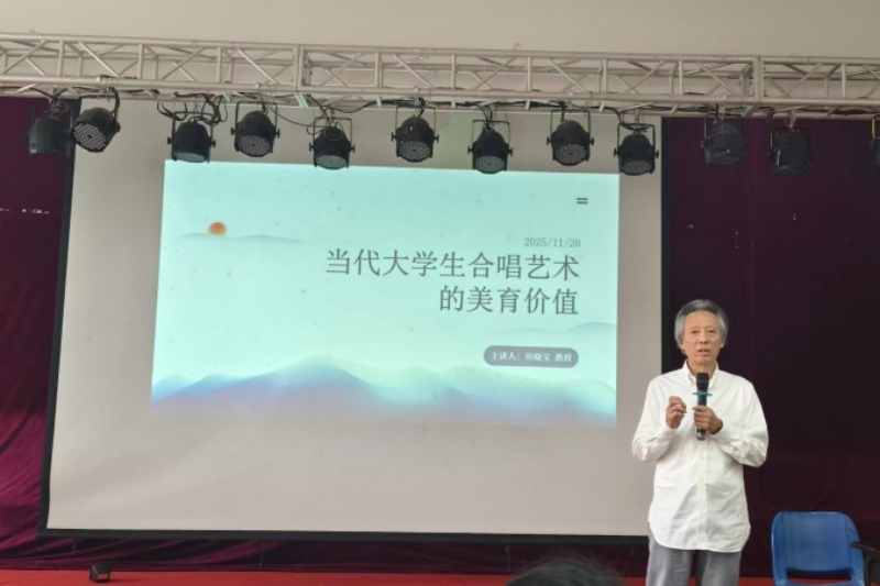 随后,田晓宝教授围绕“当代大学生合唱艺术的审美价值”展开深入讲解。他结合自身丰富的艺术实践经验,从合唱艺术的历史传承、审美内涵、情感表达等维度,系统阐释了合唱艺术对大学生综合素质提升的重要作用;通过经典作品案例分析,引导师生理解合唱艺术中“和谐之美”“协作之美”“人文之美”的深层意蕴,为在场师生带来了一场兼具理论深度与实践指导意义的艺术盛宴。
