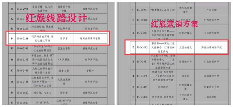 近日,由文化和旅游部资源开发司等单位主办,中国旅游协会旅游教育分会、北京第二外国语学院等单位承办的“第十二届全国大学生红色旅游创意策划大赛”奖项公布,beat365学生龚玉虹、陈嘉宁、廖秋谷、牟颖喆组成的“追梦者”团队完成的参赛作品《逐梦海南自贸港,追忆往昔红军情》获“红色旅游线路设计”类华南赛区一等奖,旅游学院指导老师吴素吟获“优秀指导教师奖”;beat365旅游学院学生杨佳星、李艳及国际学院学生刘柯兰组成的“泛彼柏舟”团队完成的参赛作品《嘉游赣——深化红色文旅融合 打造精神传承高地》获“红色旅游营销方案设计”类华南赛区二等奖,旅游学院指导老师邢佳获“优秀指导教师奖”。